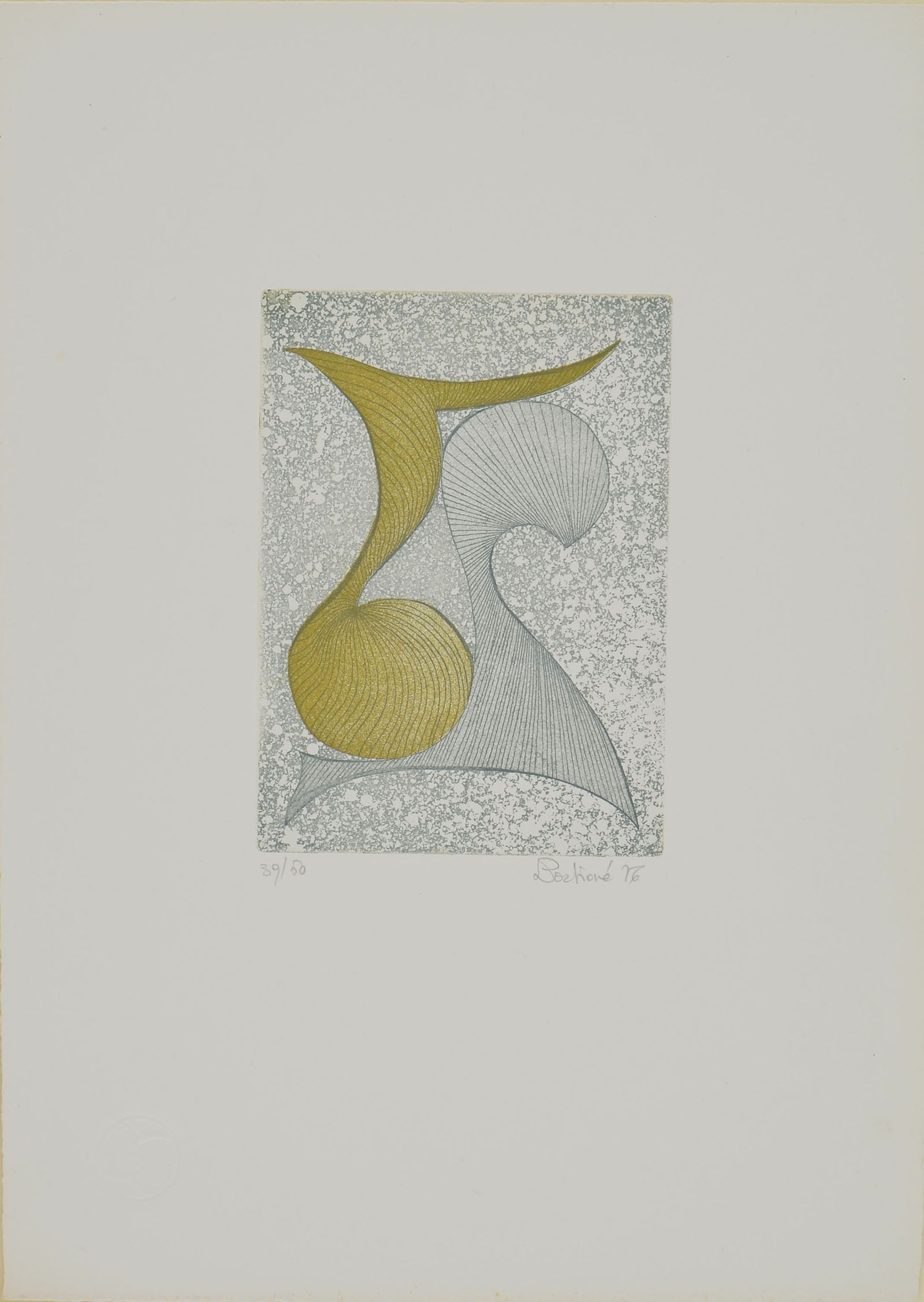 Etching and aquatint, printed in colour. From the series Storie di Stelle, Dodici Acqueforti di Laura Portione', printed in Venice at Centro Internazionale per la Grafica in 1976. The edition consisted of 50 impressions numbered in Arabic and 10 numbered in Roman. Our impression numbered, signed and dated in pencil bottom margin 39/50 LPortione' 76. To the platemark 150 x 209 mm, the full sheet 348 x 250.