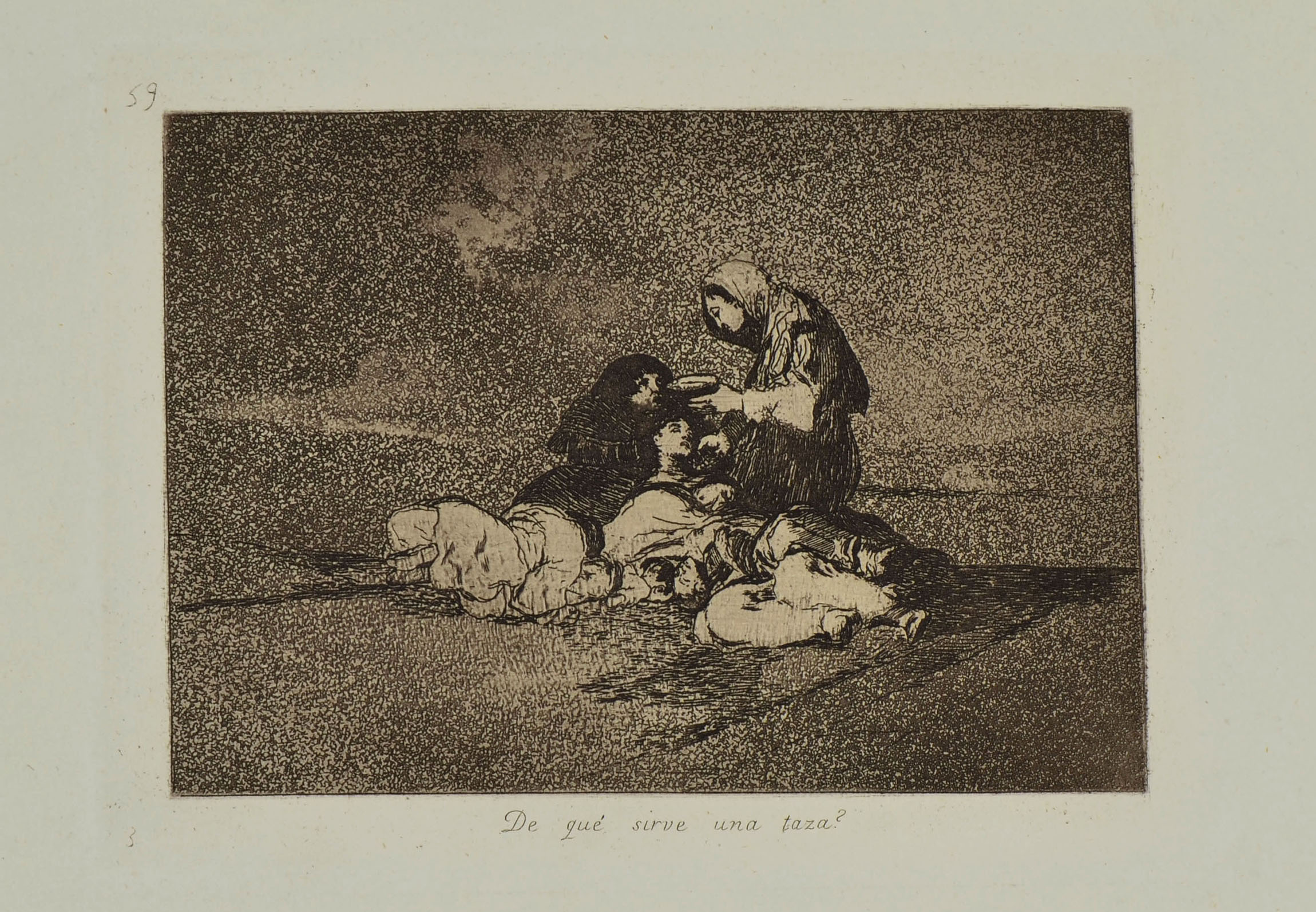 Etching, lavis, drypoint, burin and burnisher, plate 59 from Los Desastres de la Guerra (c.1810-1820); Harris 179, III, 1b. An impression from the first edition (1863), limited to 500 copies, printed in sepia ink on heavy, absorbent wove paper. With margins, generally in very good condition. To the platemark 149 x 204 mm, the entire sheet measuring 237 x 318 mm.