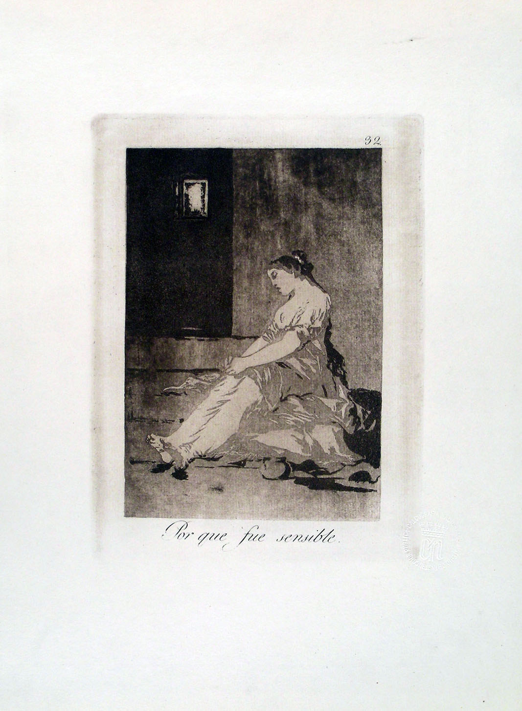 Aquatint, plate 32 from Los Caprichos (1797-98); Harris 67, III, 11. An impression from the eleventh edition (1929), limited to 100 copies, printed in sepia ink on laid paper. With the blind stamp of the Calcografia Nacional. With margins, generally in very good condition. To the platemark 207 x 153 mm, the entire sheet measuring 340 x 250 mm.