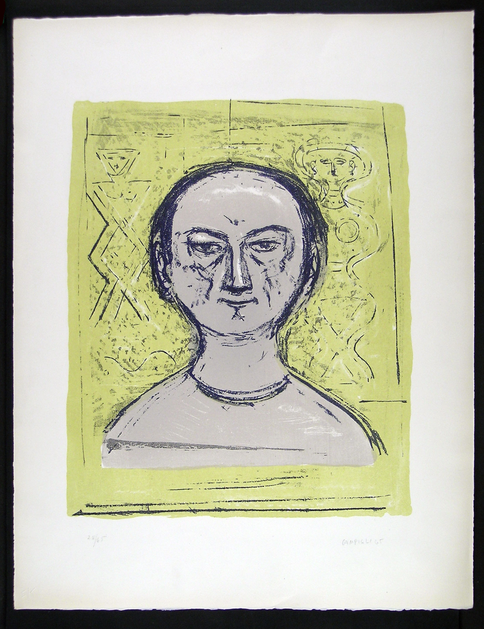 After military service during World War I, Campigli moved to Paris in 1919. In Paris he worked for nine years as a journalist for Il Corriere della Sera, during which time he began to paint. Self-taught as a painter, he was initially drawn to Purism, Léger, the neoclassicizing works of Picasso and Metaphysical painting. Campigli also admired the preclassical works in the Louvre, but it was only in 1928, when he saw the Etruscan collection at the Villa Giulia in Rome, that he was profoundly affected by ancient art. His love of archaism and of hieratic and abstract form led him to find sources in Cretan, Pompeian and Coptic as well as Etruscan art. Campigli very rapidly won acclaim, and had exhibitions in Rome, New-York, Venice and Paris. He settled in Saint Tropez in 1949; the Palazzo Reale in Milan held a big retrospective show of his work in 1967. Campigli always showed interest in prints, mainly lithography.