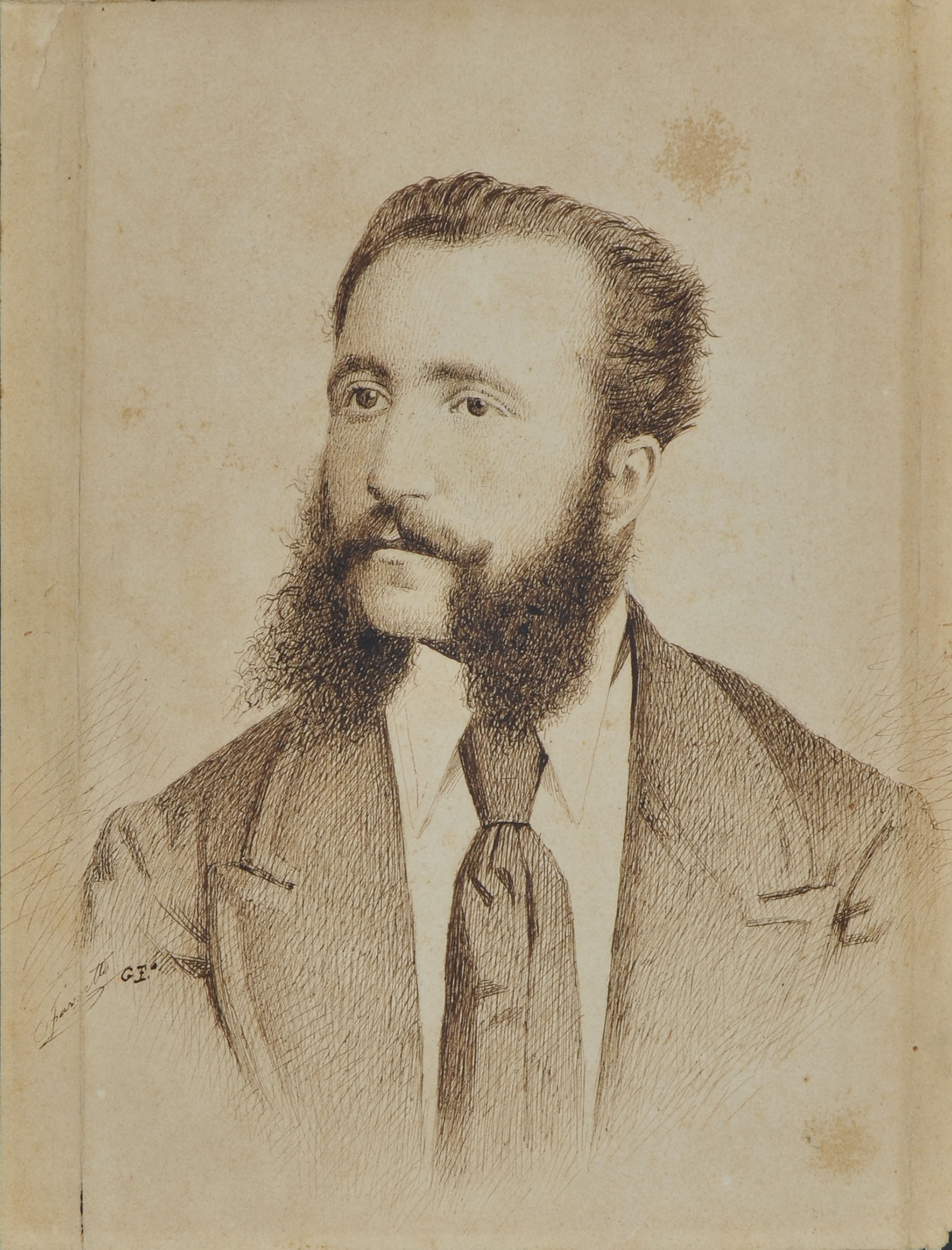 Pen with brown ink, on cardboard; signed bottom left Favretto, inscribed, not by the artist, with the monogram G.F. 250 x 200 mm.