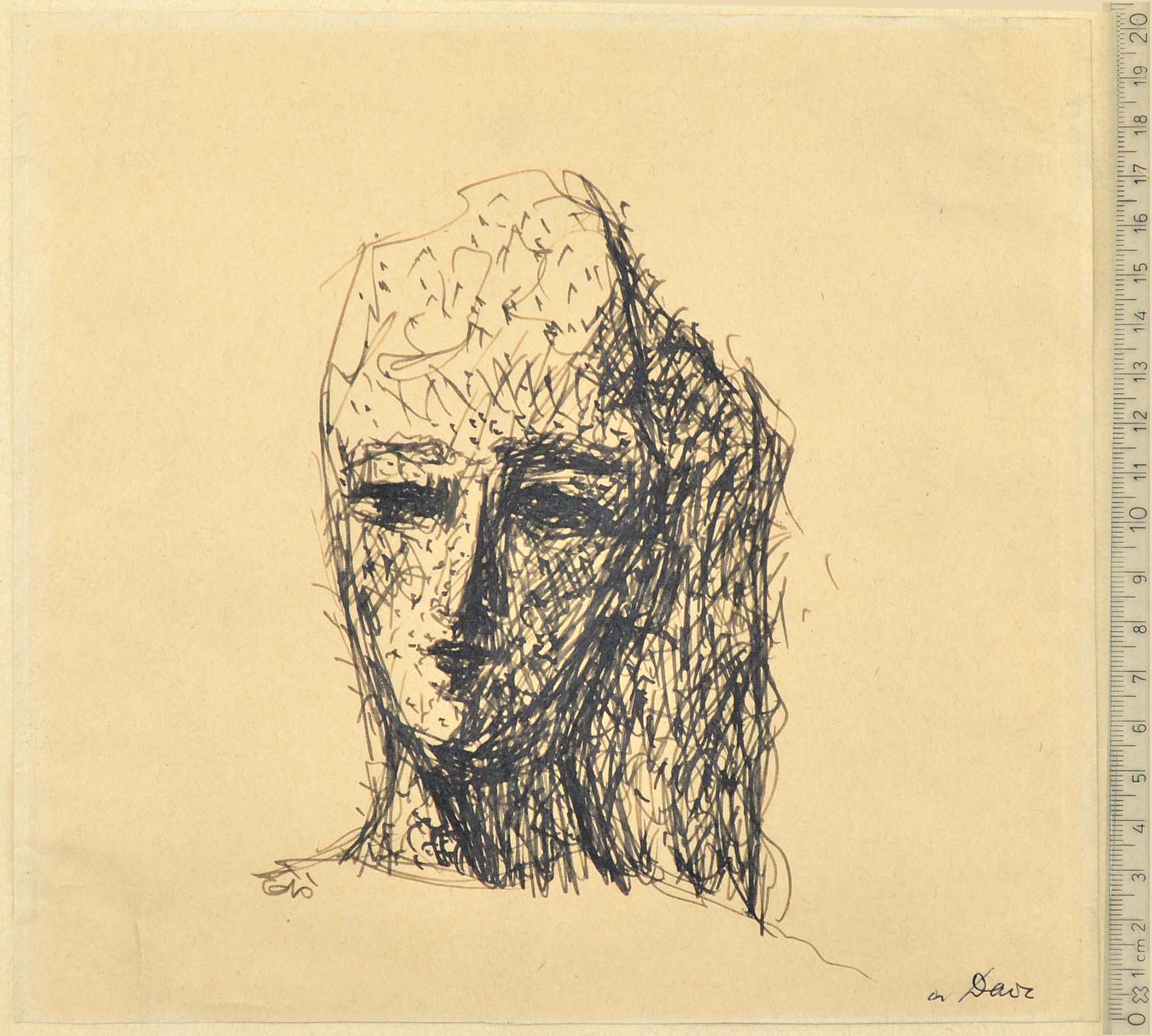 Pen with ink, signed bottom left Giò, dedicated a Daria bottom right (Daria Guarnati). 205 x 219 mm.