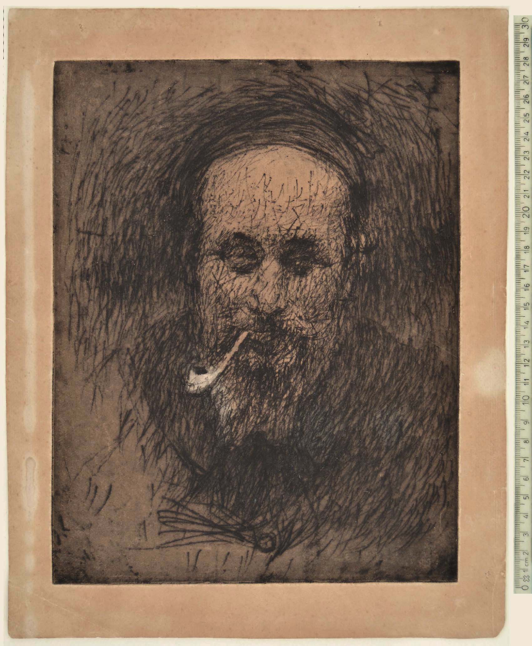 Soft ground etching. A strong, richly inked impression, with margins. Toned and minor defects at margins. Authenticated by Bucci's wife. To the platemark 278 x 217 mm; the full sheet measuring 335 x 268 mm.