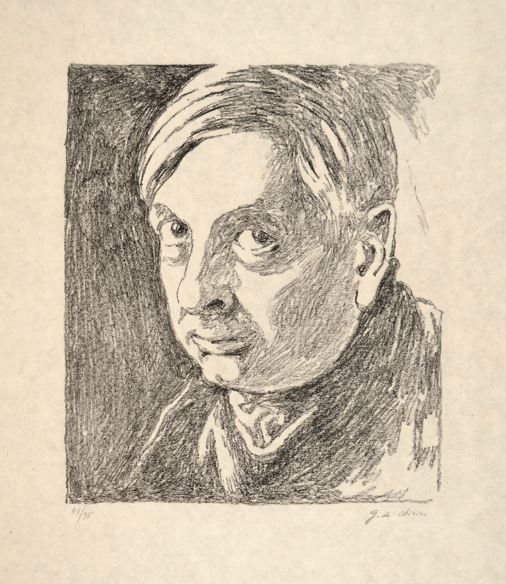 Giorgio de Chirico was born in Greece, to Italian parents. He received his first drawing lessons at the Polytechnic Institute in Athens in 1900. In 1906, the family moved to Munich, where de Chirico attended the Academy of Fine Arts, becoming acquainted with the magic realism of Swiss-German painter Arnold Böcklin and the writings of Friedrich Nietzsche. At various important junctures in his career de Chirico lived in Paris (1911–15, 1925–32), as well as in the United States (1936–38), but he spent most of his life in Italy. In Ferrara in 1917 he met the artist Carlo Carrà, with whom he developed the concept of Pittura Metafisica and began producing dreamlike images of deserted cities and still scenes with mysterious mannequins made from combinations of objects. These pictures of a restless dream world evoke the heightened perception of the subconscious and are the direct antecedents of the Surrealism of the 1920s. In 1926, however de Chirico changed to a more classical style with traditional subject matter. It was not until 1955-1960 that he openly went back to creating art with Metaphysical subject matter.
