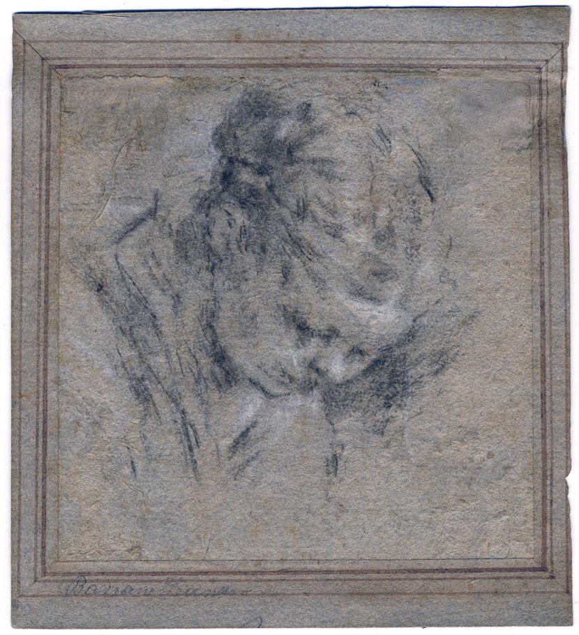 Black chalk heightened with white, on greenish paper; 89 x 86 mm. On an old mount, inscribed in pencil by a modern hand Bassano Leandro.