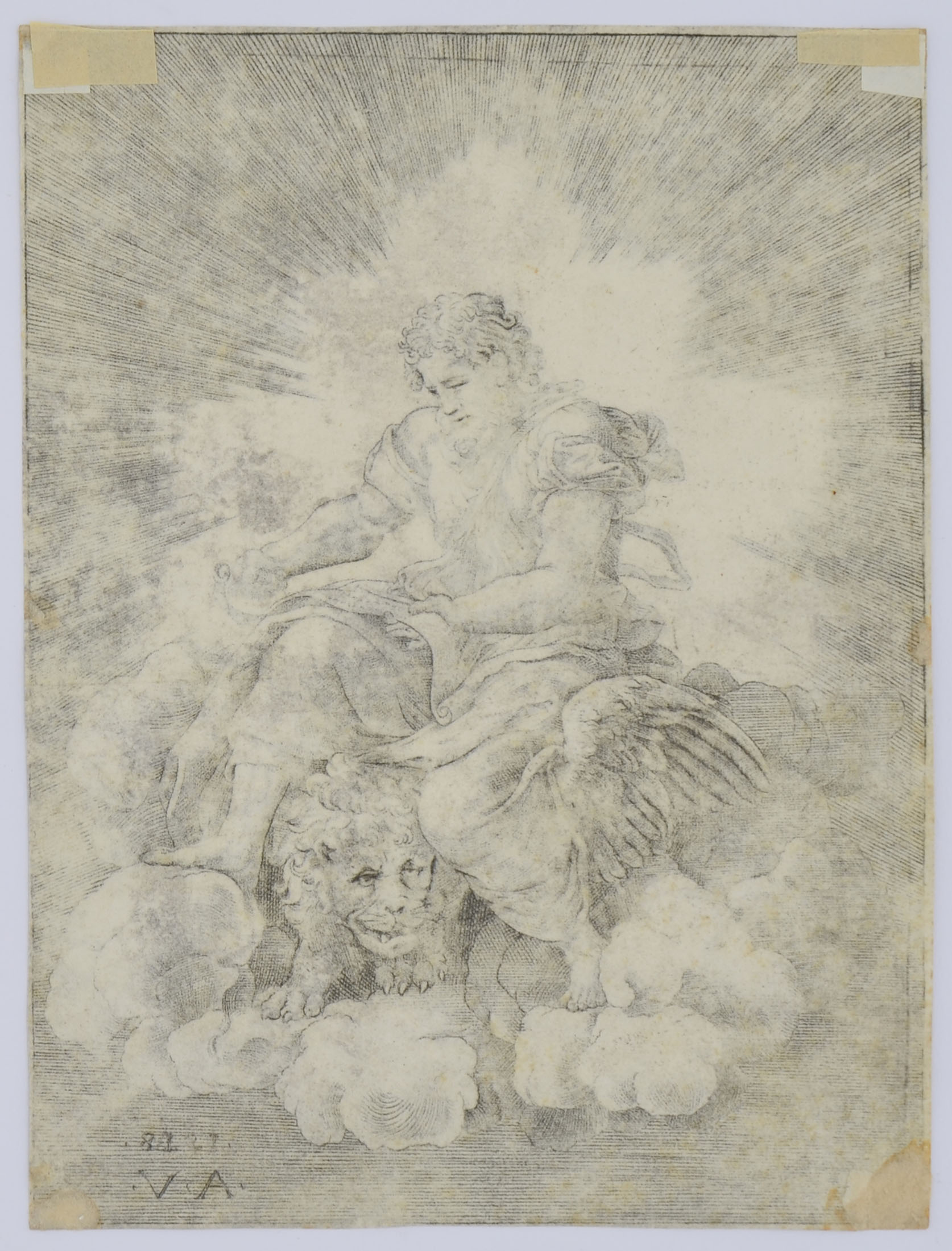 Engraving, after Giulio Romano, Bartsch XIV, 94. Signed with the monogram and dated 1518. A very good, strong impression, on paper with watermark Scales in a Circle, under a Six Pointed Star. Minor stains at corners, otherwise in good condition.