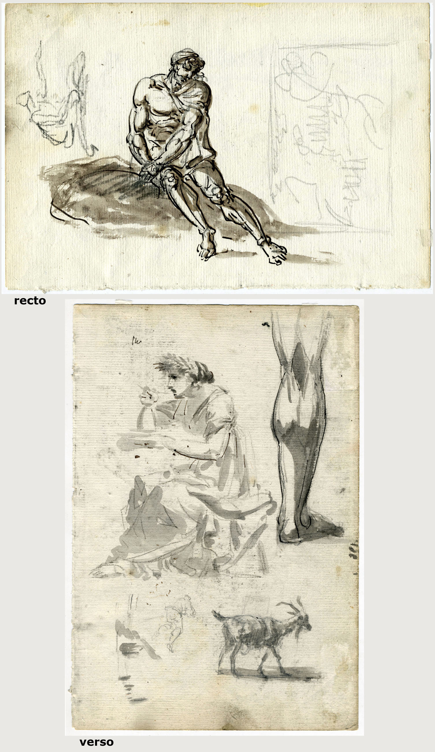 SKETCH OF A SEATED MAN AND SKETCH OF A PAINTING (recto); FIGURE STUDIES (verso)