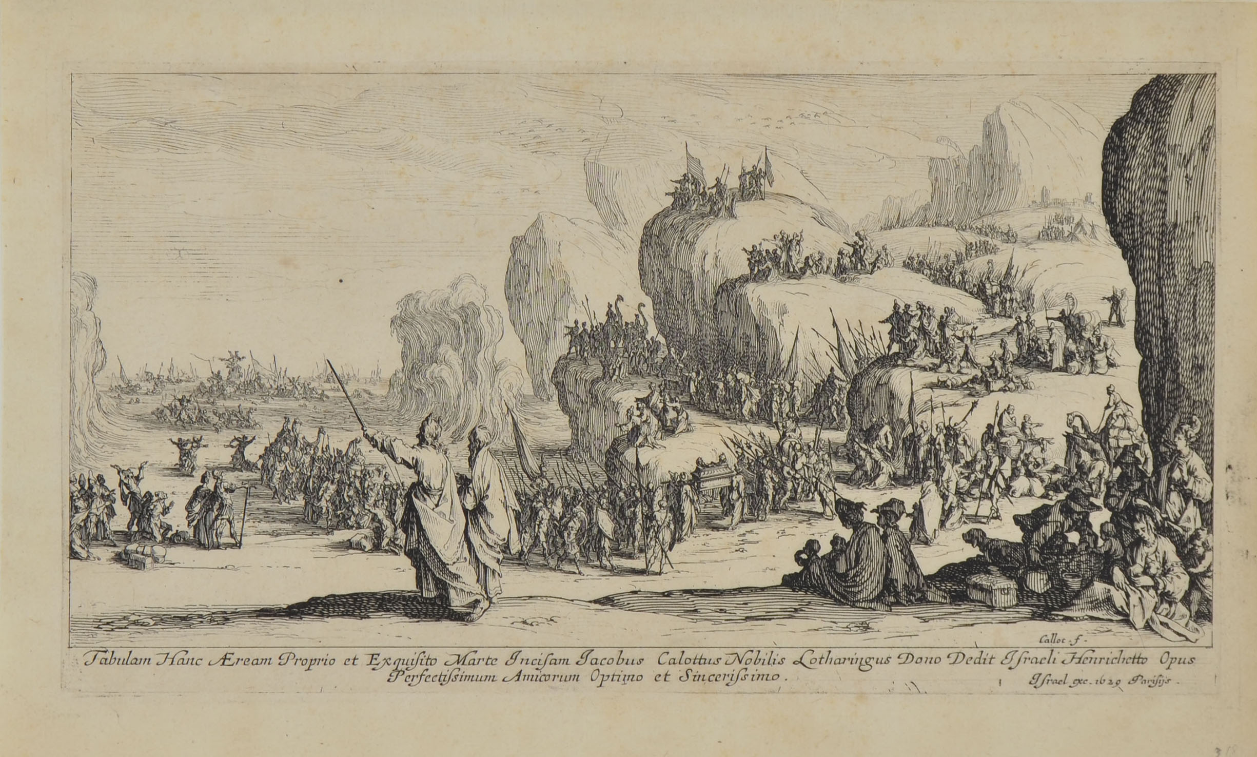 Jacques Callot went to Italy when he was in his teens. By 1608 he had apprenticed, in Rome, to engraver and publisher Philippe Thomassin, learning line engraving and copying Flemish art and late Mannerist works in Roman churches. However, Callot's real career started in Florence in 1612, when he began working for the sophisticated, elegant Medici court of the Grand Duke Cosimo II (1590-1621). In Florence he learned to combine the techniques and exaggerations of late Mannerism with witty and acute observation into a brilliantly expressive idiom. Callot drew and etched fairs, festivals, commedia dell'arte characters, beggars, courtiers, and hunchbacks. After Duke Cosimo II's death in 1621, Callot returned to Nancy, where he worked for the Lorraine court. In Nancy, Callot approached his work with a new directness and seriousness. He added poignant religious subjects, siege compositions, and sensitive landscape drawings and etchings to his repertoire. In 1633, inspired by the Thirty Years War and Cardinal Richelieu's invasion of Lorraine, Callot created a series of prints called the Miseries of War. His devastating appraisals of human cruelty and folly were used as a source by Goya, two hundred years later, for his Disasters of War. Callot's output was prodigious; more than a thousand etchings and drawings by him are extant, and some of his plates are large, featuring scores of brilliantly arranged figures. Jacques Callot was one of the greatest of all etchers and one of the first major creative artists to work exclusively in the graphic arts.