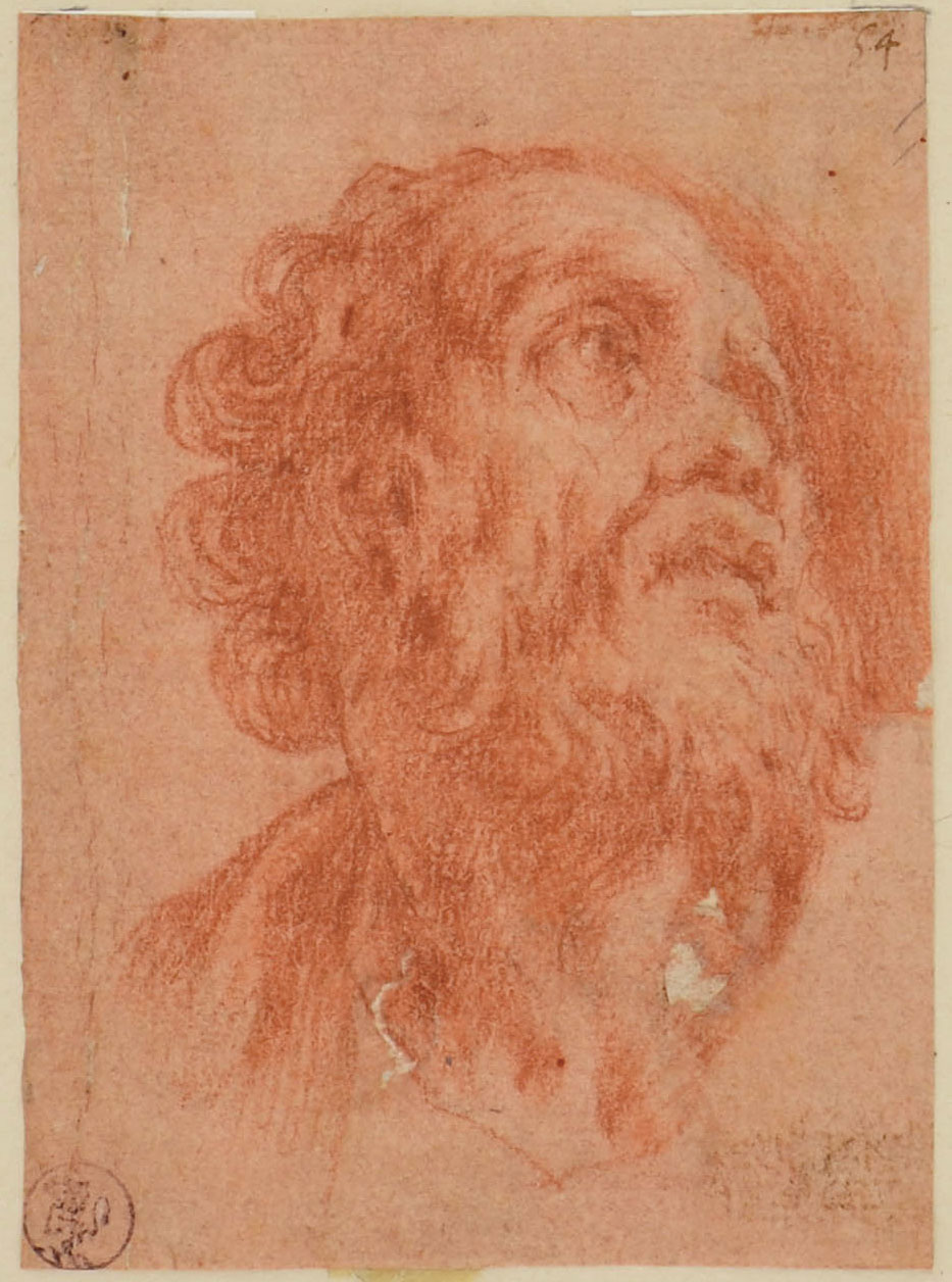 Red chalk on red prepared paper. Numbered 54 top right corner. 108 x 78 mm.