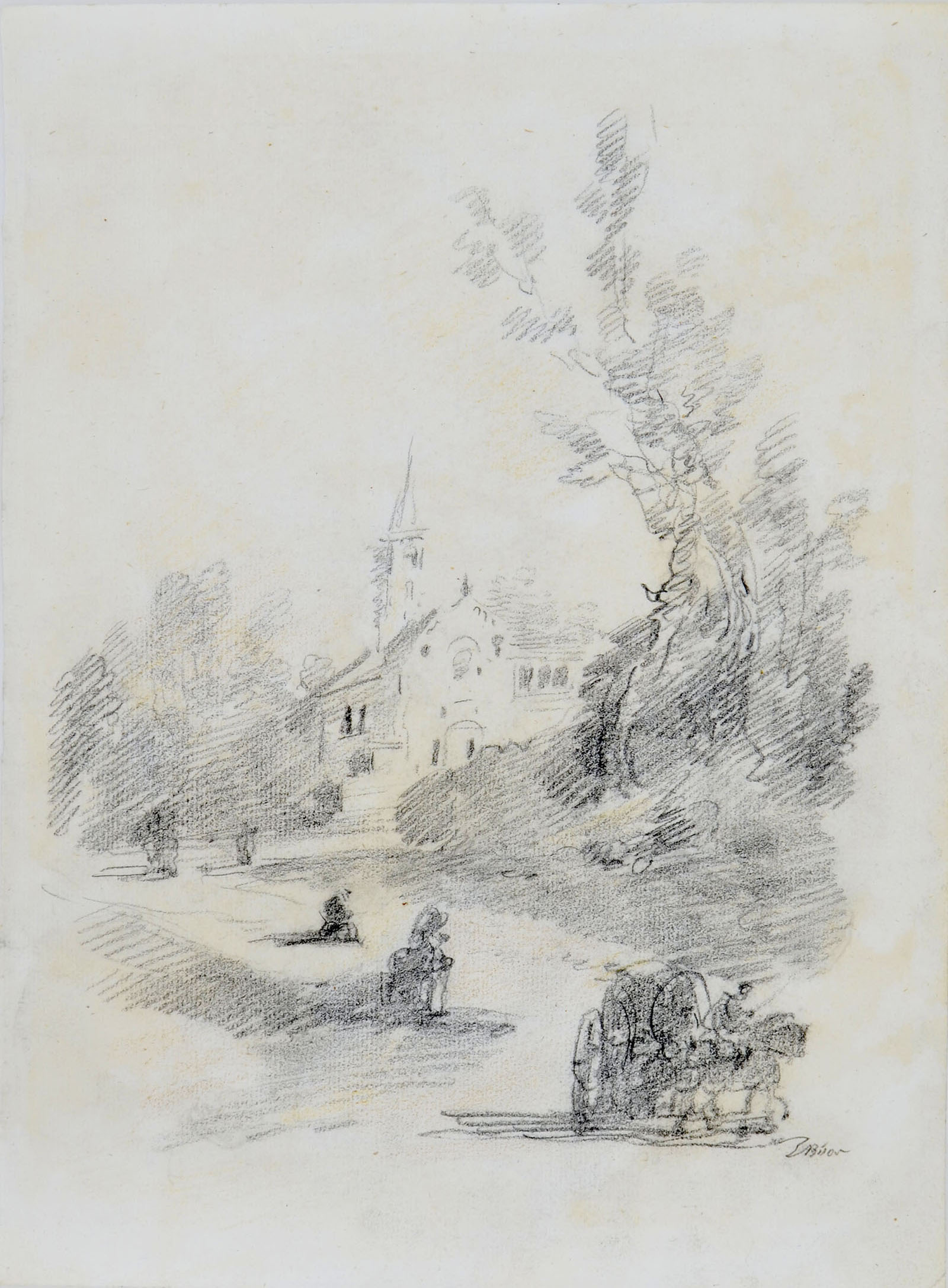 Bison studied in Brescia and later at the Academy in Venice. The major influences on his work were the paintings of Gian Battista and Gian Domenico Tiepolo, Marco Ricci and Francesco Guardi. After traveling in northern Italy, the artist resided in Trieste (c. 1800-31), where he acquired certain neoclassical tendencies. Later, he moved to Milan, at that time dominated by the Romantic style. Bison was a virtuoso, prolific draughtsman. See: Giuseppe Bernardino Bison pittore e disegnatore, Milan, 1997, catalogue of the exhibition at the Musei Civici, Udine.