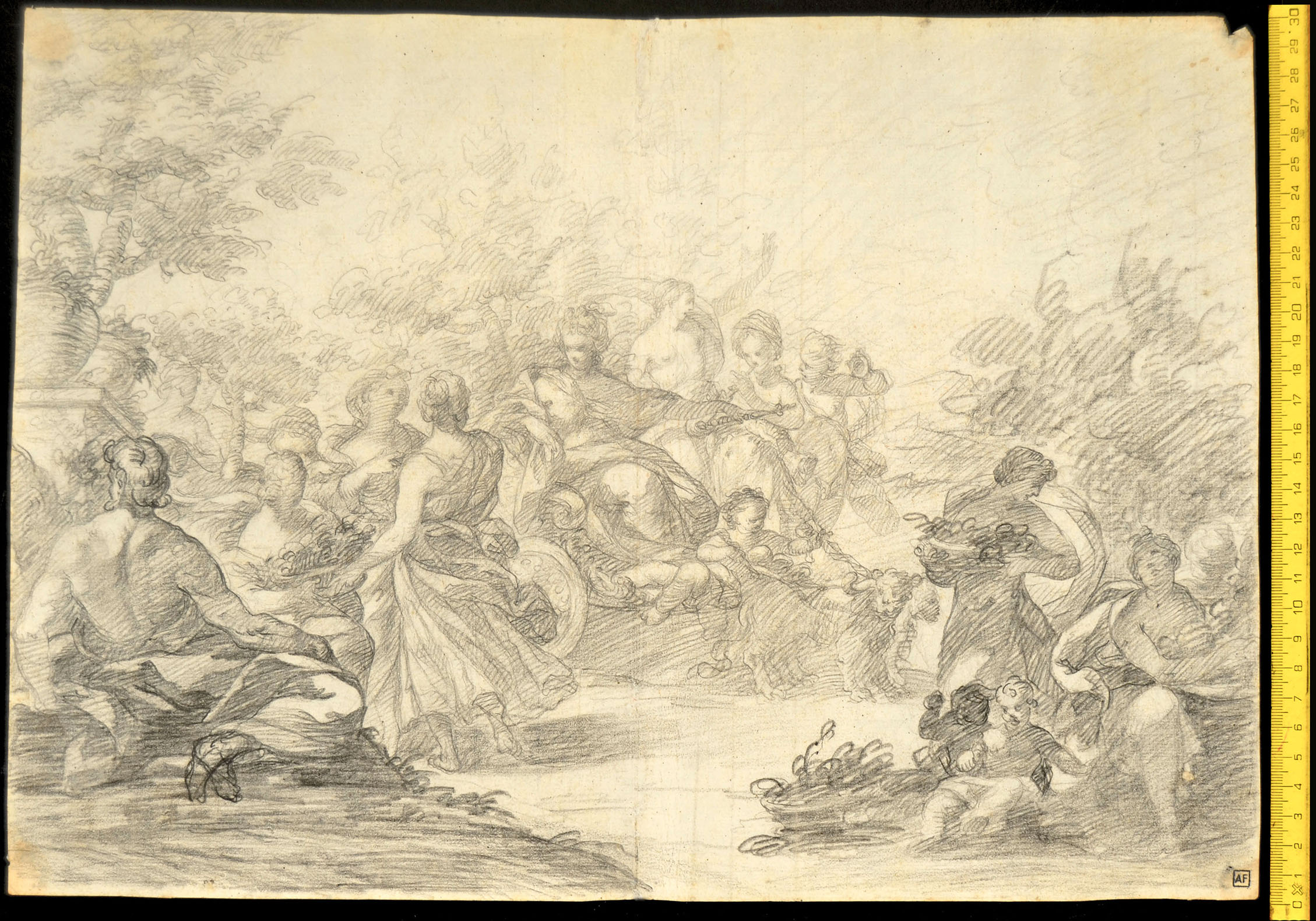 Black chalk on paper with watermark Pascal Lamb in circle over letters A B. 300 x 421 mm.PROVENANCE Alfredo Viggiano, Lugt 191a.
