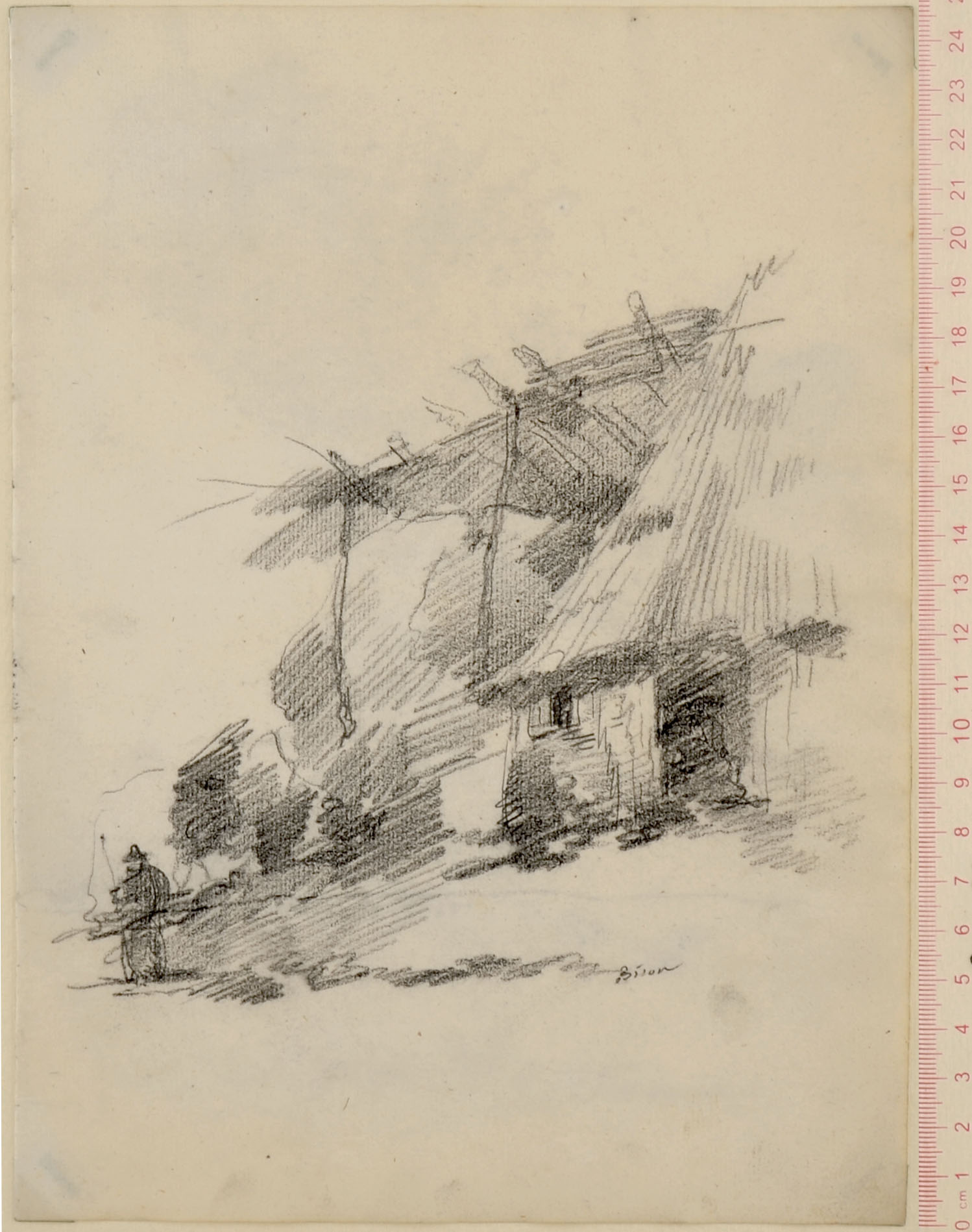Black chalk on laid paper. Signed Bison bottom right. 247 x 184 mm.