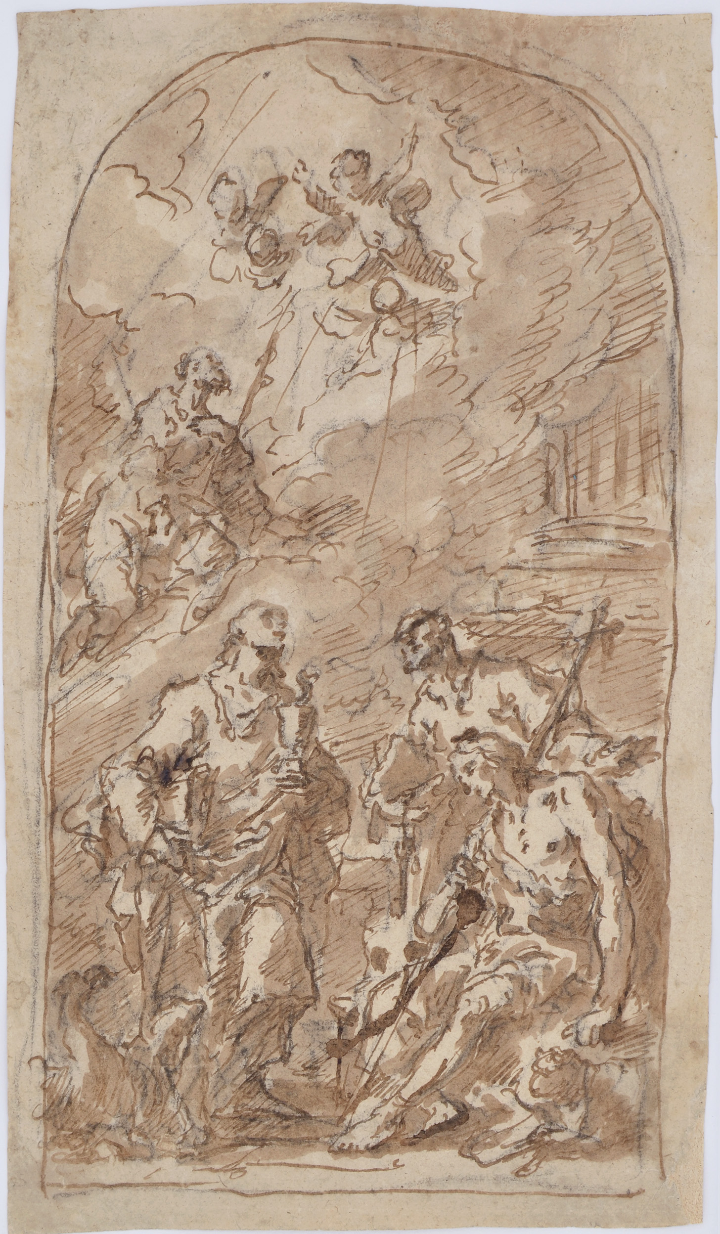 The drawing is preparatory for the altarpiece in the parish church of Codroipo (Udine), a painting from the artist's late maturity.