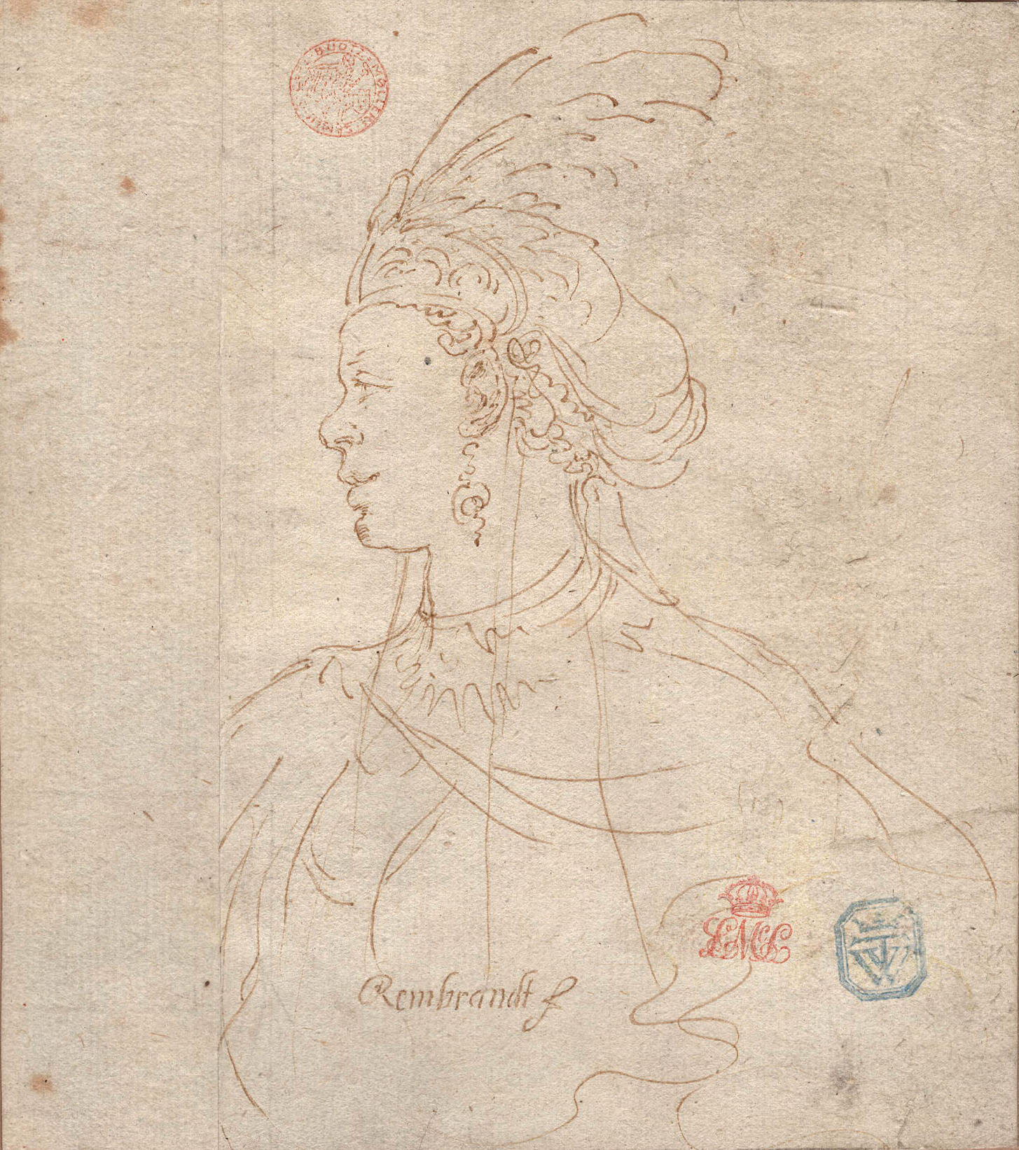 Pen and brown ink. Inscribed in pen Rembrandt f. 137 x 95 mm