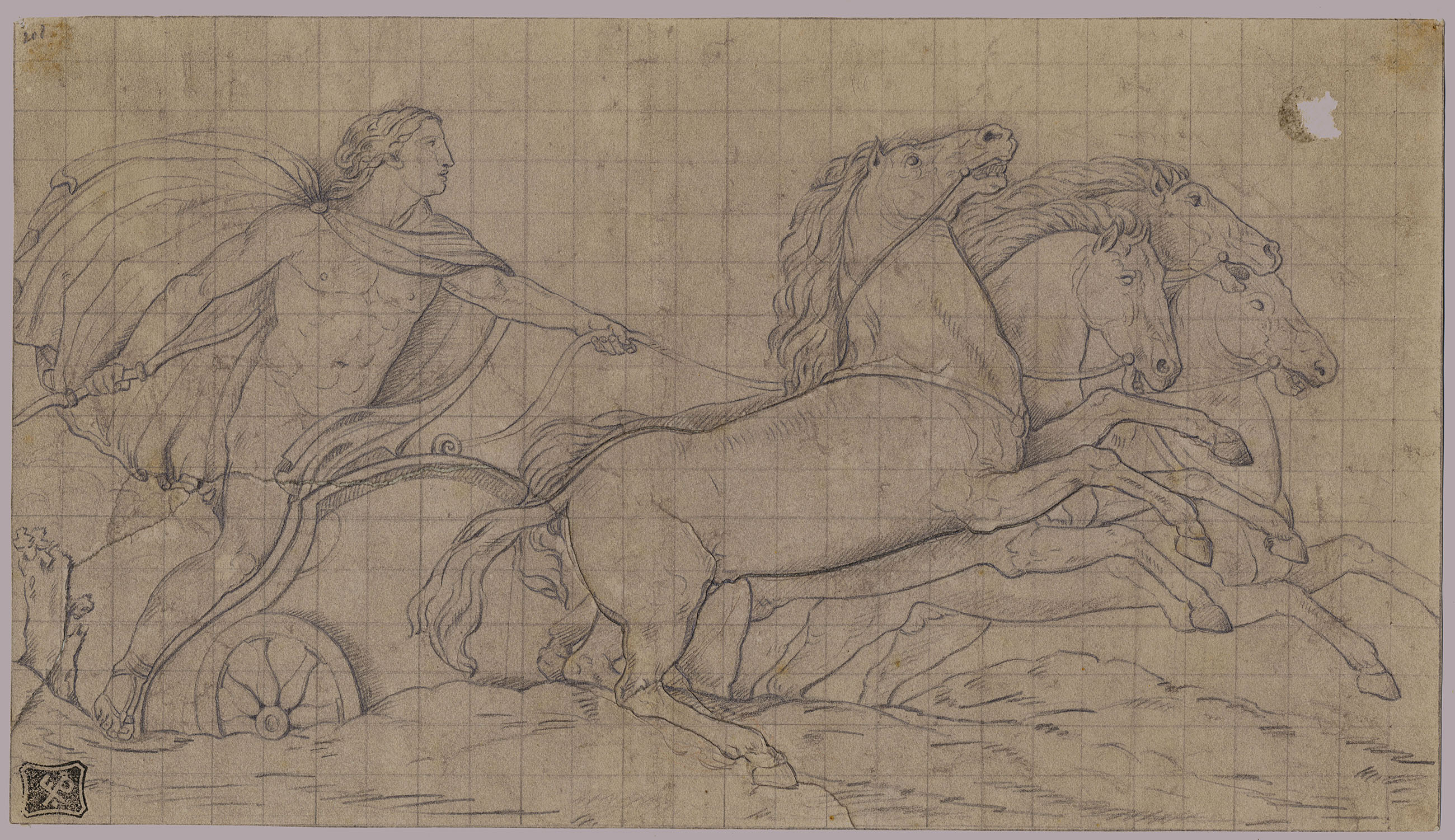 PROVENANCE: Felice Pasquè (Lugt 3771). This is the preparatory drawing by Marri for the etching by Ignazio Altini, which was included in the collection of etched copies after Appiani published in 1820 by Michele Bisi: Incisioni delle opere del pittore Cav.re Andrea Appiani dedicate a S.A.I. il granduca Michele di Russia e pubblicate dell'incisore Michele Bisi, Milano, per Nicolò Bettoni. See here for a comparison between the drawing and the print. The source of our drawing is one of the panels, painted in monochrome by Appiani in the Sala dei Principi in the Palazzo Reale, in Milan (1808). As the great part of the frescoes by Appiani in the palace, the Sala dei Principi has been destroyed by bombing in the second World War.