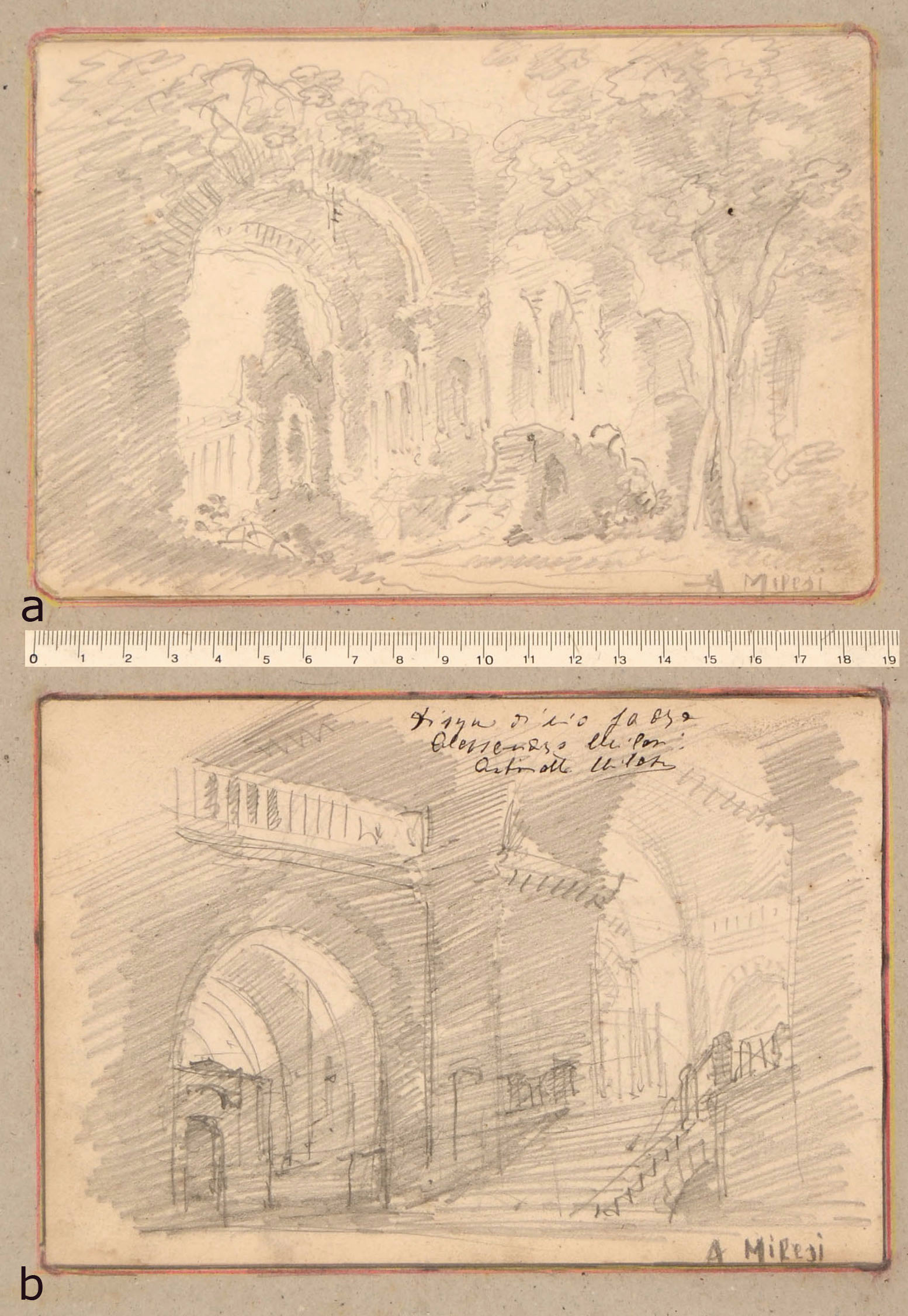 Both the drawings signed by the artist and authenticated by the artist's daughter, Antonietta Milesi. Both, partly pasted on cardboard, show other sketches on the verso.