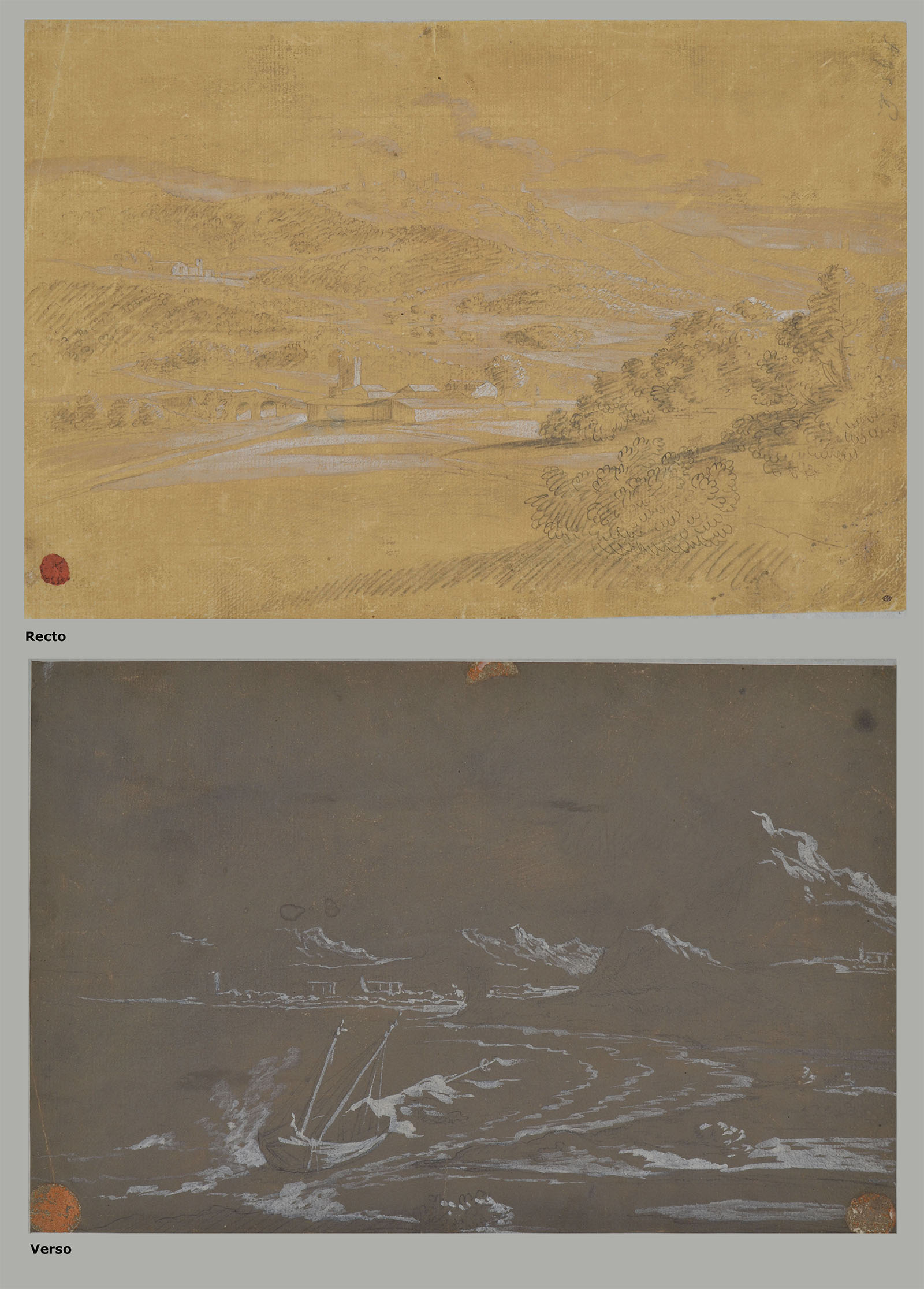 Verso: white lead on brown paper.