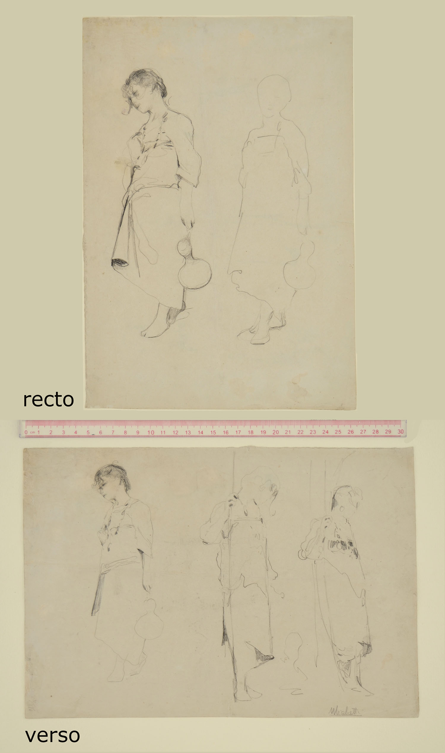 A SHEET OF STUDIES: Two studies of a standing girl (recto), Three studies of standing girls (verso)