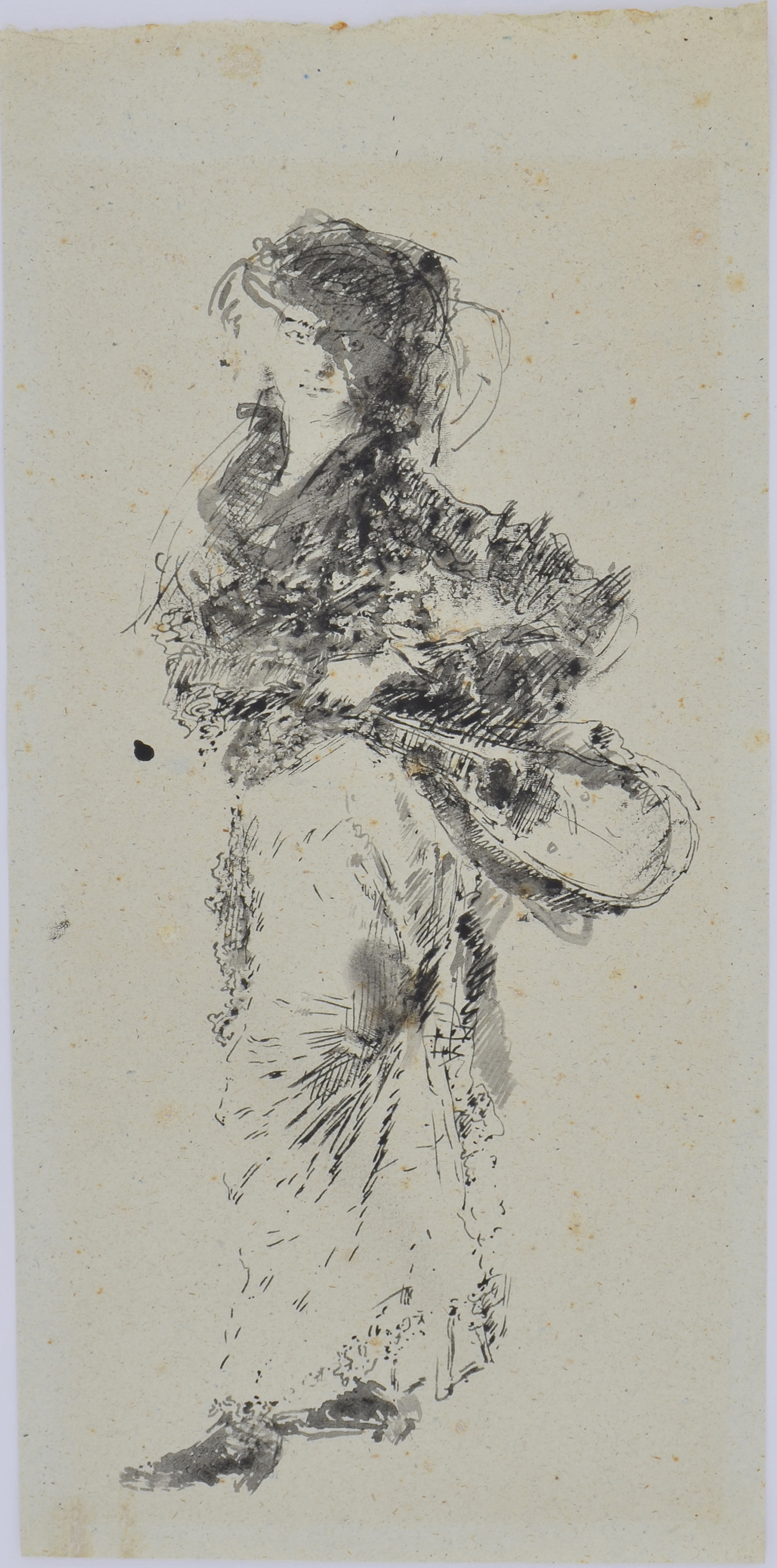 SKETCH OF A STANDING FEMALE FIGURE WITH A MANDOLIN