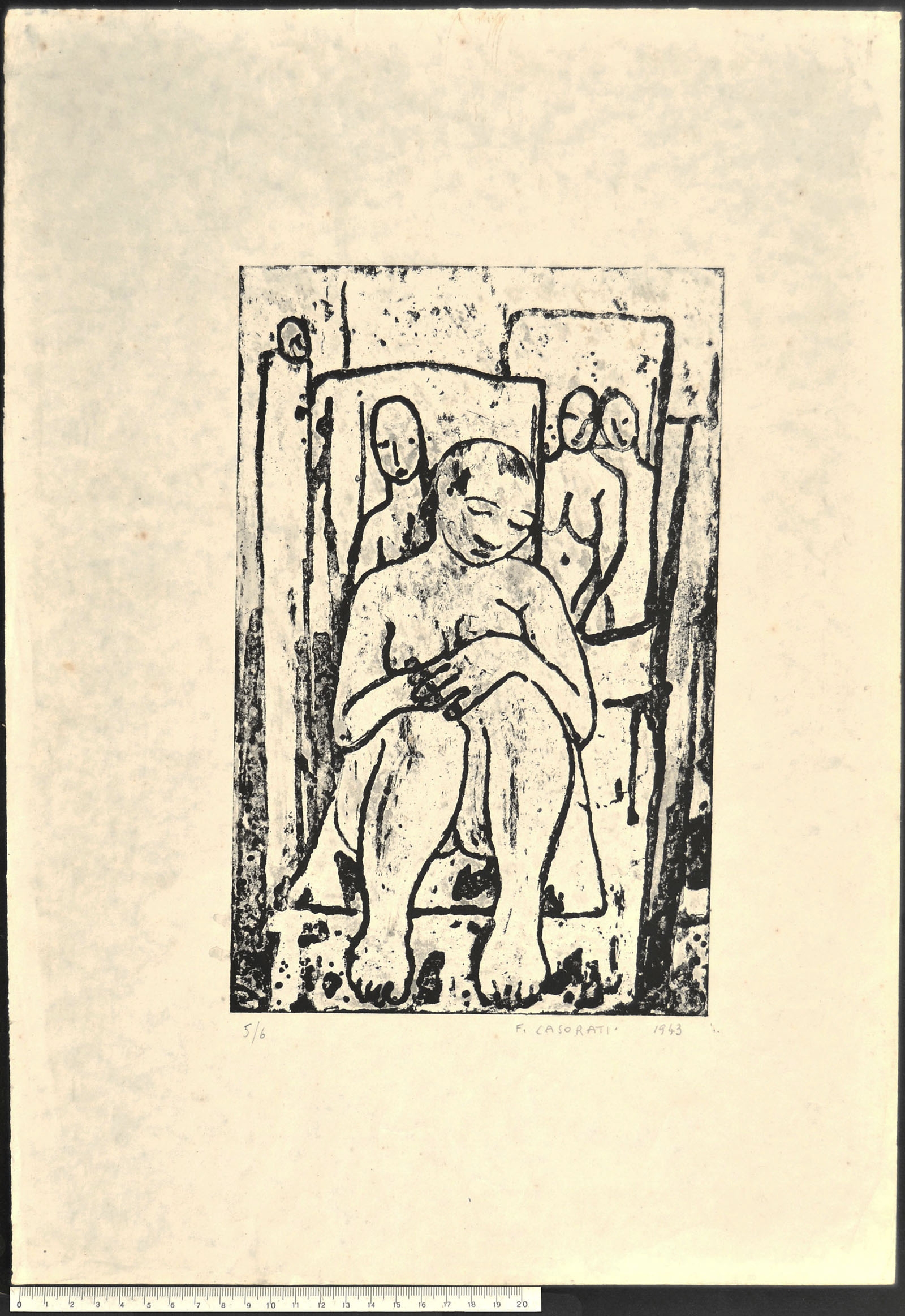 Zinc lithograph, printed in black ink on thin simili Japon paper. Numbered, signed and dated at the bottom in pencil 5/6 F. Casorati 1943. The edition was of 6.