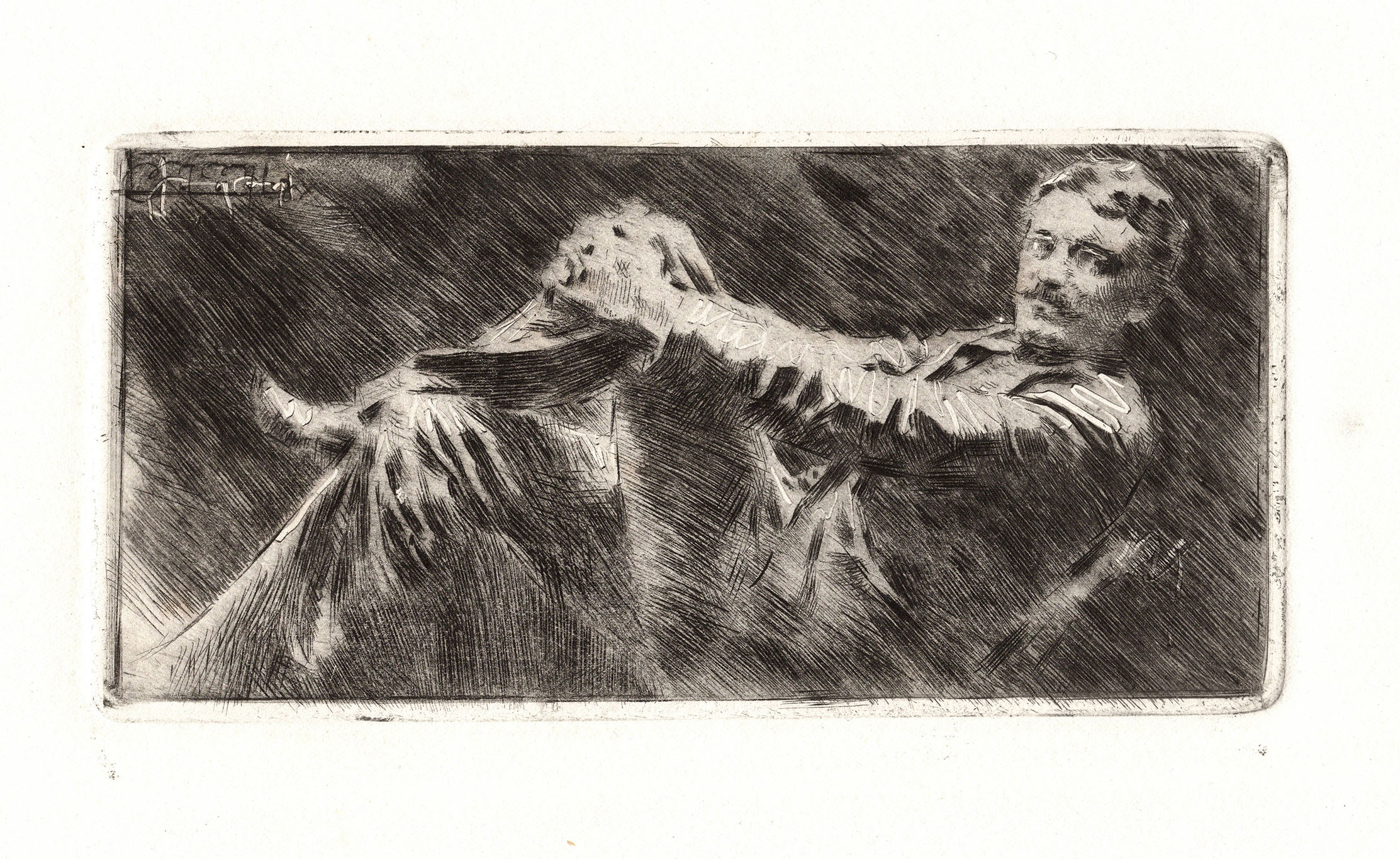 Etching, 1884; a fine impression of the only state, richly and skillfully printed with black ink working on the surface tone, on thick white wove paper. Signed and dated in the plate LConconi 84, signed LConconi in the film of ink left on the plate in wiping. Large margins, fine condition. To the platemark 78 x 160, then entire sheet measuring 296 x 463.