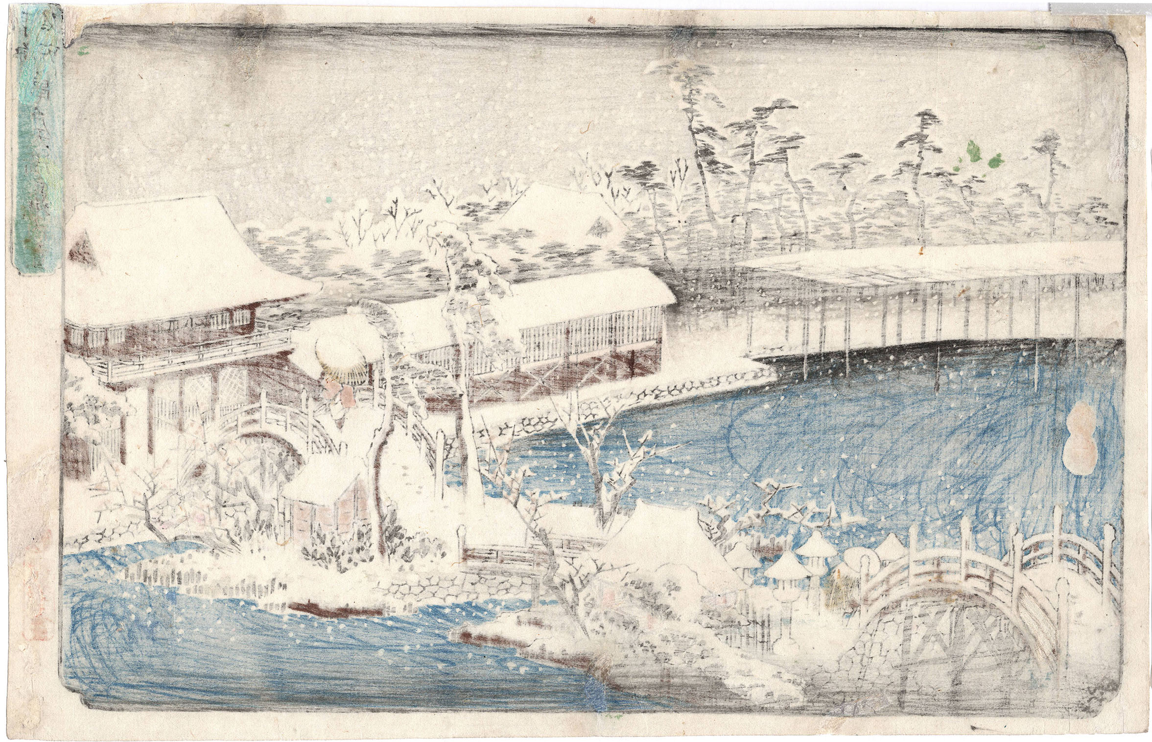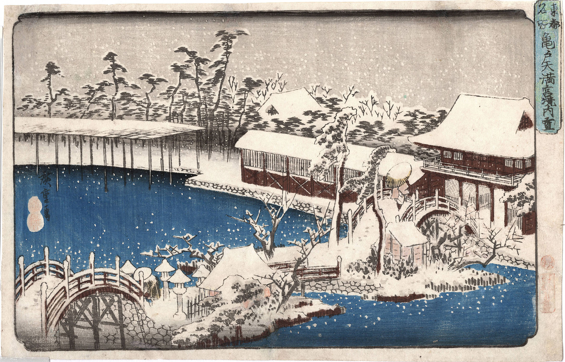 Colour woodblock print, from the oban yoko-e series Famous Places in the Eastern Capital (Toto meisho). Published by by Sanoya Kihei. Signed Hiroshige ga.