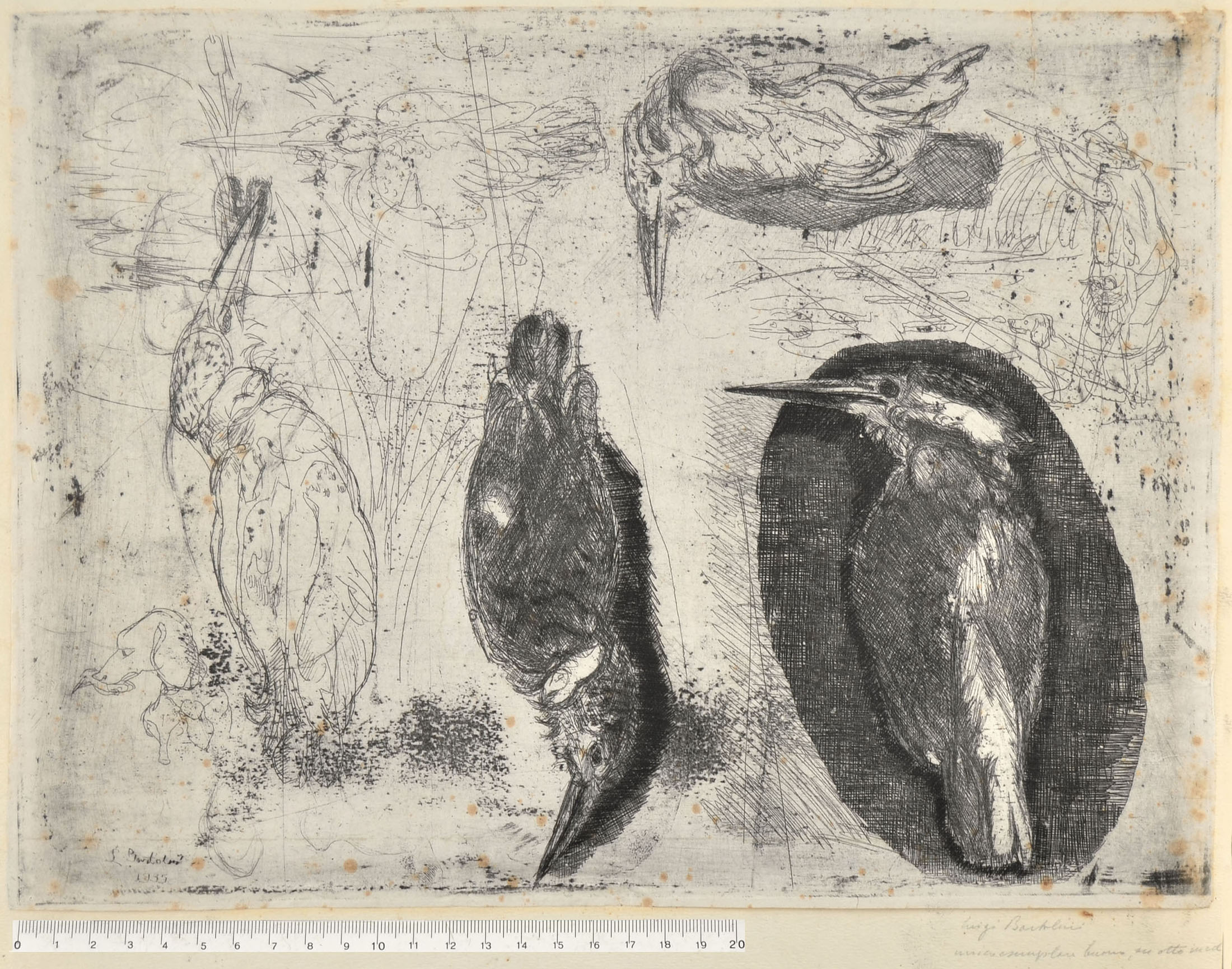 Certainly this etching is the most famous and celebrated of the large corpus of works by Bartolini as a printmaker. The most accurate cataloging of it is due to Dario Palma, see his site luigibartolini.com and, specifically, the page L'enigma del Martin Pescatore.