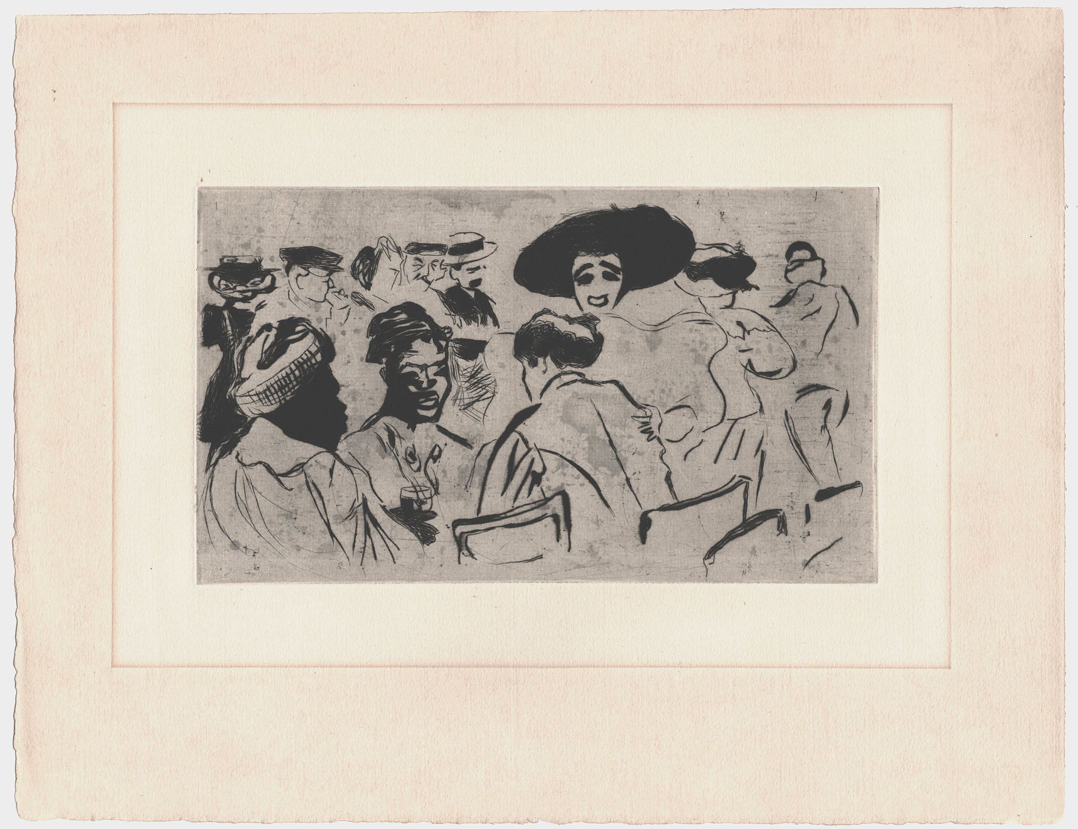 Drypoint, from the series Paris qui Bouge; fine impression, with margins. Lightly toned. To the platemark 121 x 208 mm, the full sheet 252 x 325.