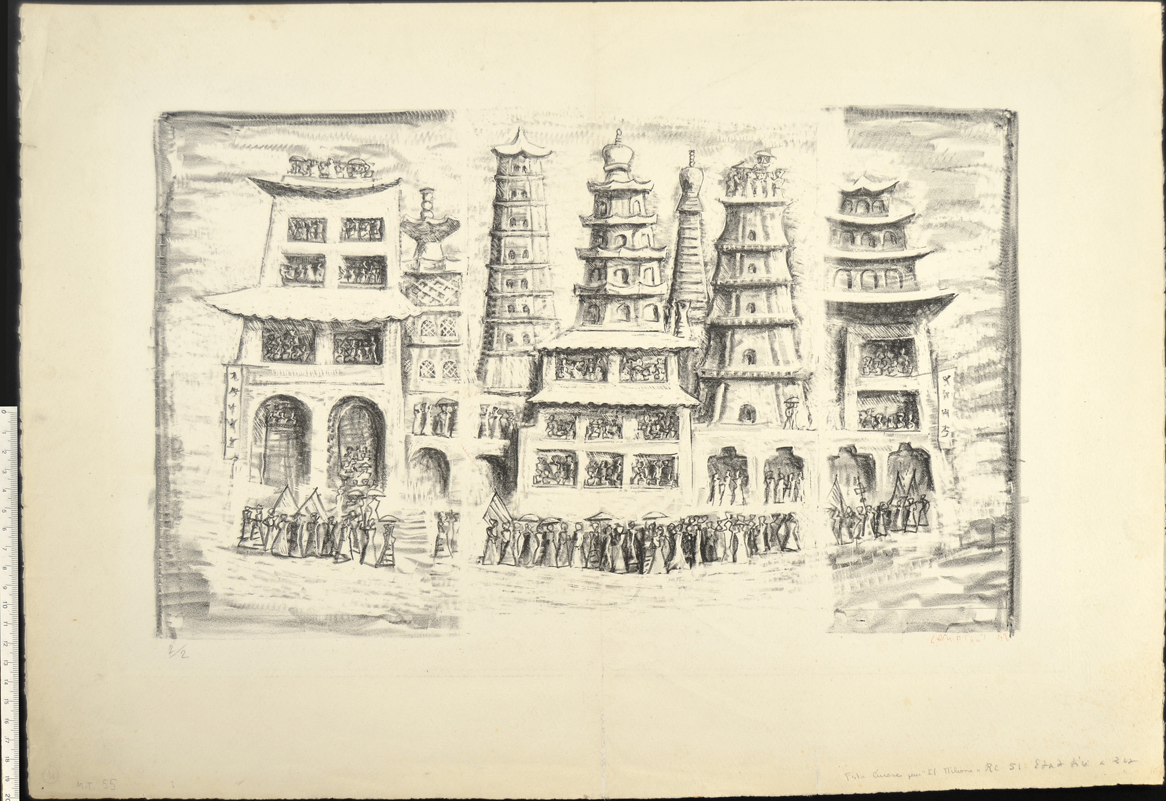 Lithograph, Meloni-Tavola 55. A rare proof impression of the second state, preceding the final impression for the book Il Milione, 1942.